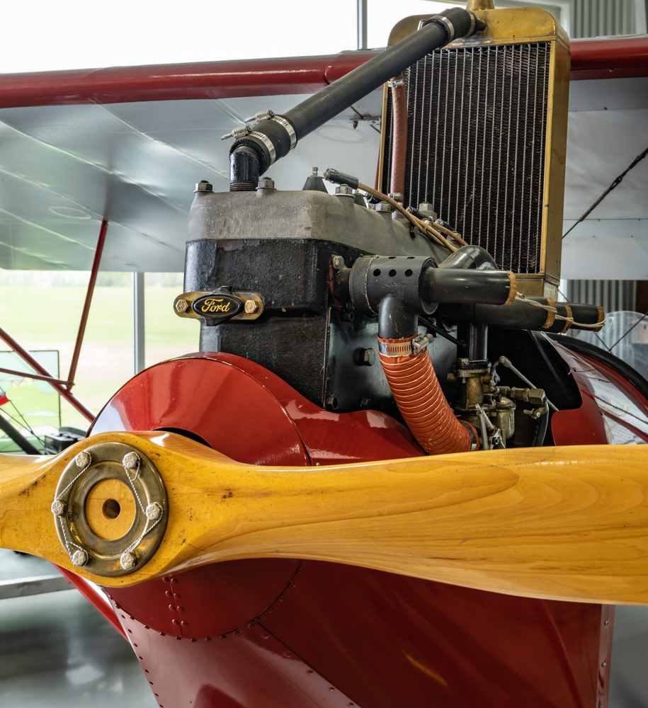 Engine of the Pietenpol's engine. This specific plane was built by Bernard Pietenpol himself.